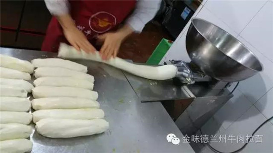 據介紹,這款揉面出劑一體機參照手工揉面、溜條、出劑的過程研發而成,既可以揉面,同時可以制作出拉面的面劑子。主要用于代替蘭州牛肉拉面、河南燴面、扯面、山西刀削面、福山拉面、西安油潑面等面團的人工揉制環節,省時省力效率高,面團密度增加,面條口感更加筋道、耐泡,還廣泛用于饅頭店、餅子店、蛋糕店、手工面食店等,可以同時節省兩個人力,把人從和面、揉面中解放出來。目前,這款揉面出劑一體機已遠銷國內外,在澳大利亞、韓國、日本等國,深受牛肉面店老板的青睞。 國內外店面使用揉面出劑一體機